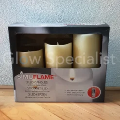 Iedere kaars werkt op 3 x AA batterijen (niet meegeleverd). Wij bieden de Simuflame Led kaarsen in verschillende afmetingen. De afstandsbediening wordt geleverd inclusief batterij.