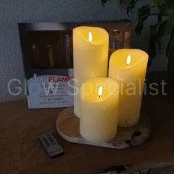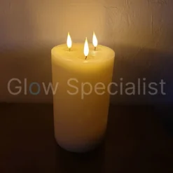 Decoratieve XL LED kaars met drie lonten met een zeer realistische uitstraling. Met echte was coating en uitgerust met Simuflame LED-lampjes die flikkeren waardoor ze op een echte vlam lijken. Met de bijgeleverde afstandsbediening zet je de kaars aan en uit en kies je de gewenste dimstand en een actieve of passieve vlam.