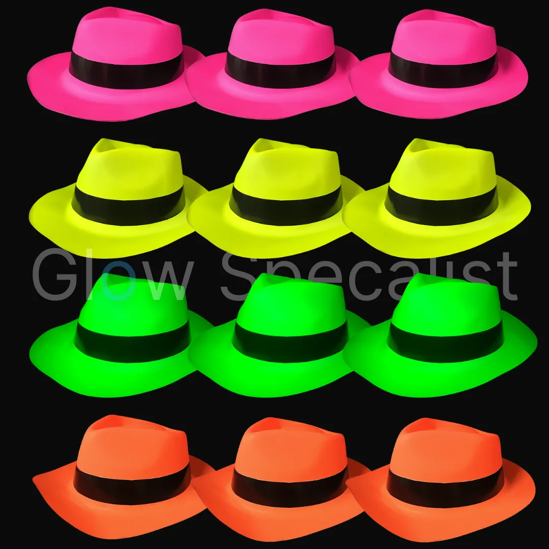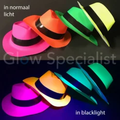 UV / BLACKLIGHT GANGSTER HOED – MIX VAN 4 KLEUREN