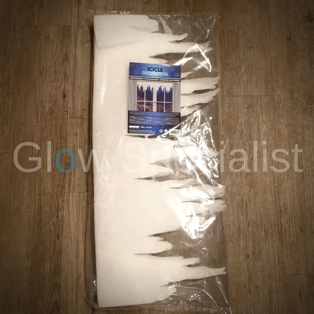 Deze slinger van witte ijspegels heeft een lengte van maar liefst 8 meter en is 30 cm hoog.