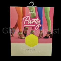 Goede kwaliteit fluor gele legging met een hoog draagcomfort. De legging is elastisch en heeft een tailleband. Dikte: 60 denier. De legging is gewoon glad en heeft dus geen werkje. Zodra je in blacklight staat licht de legging fluorescerend op. Geweldig op een Glow feest of neon party.