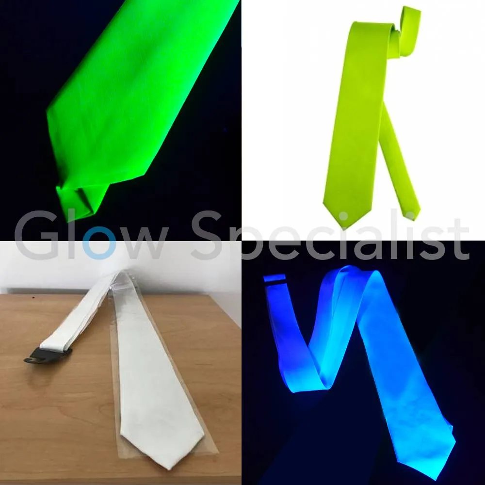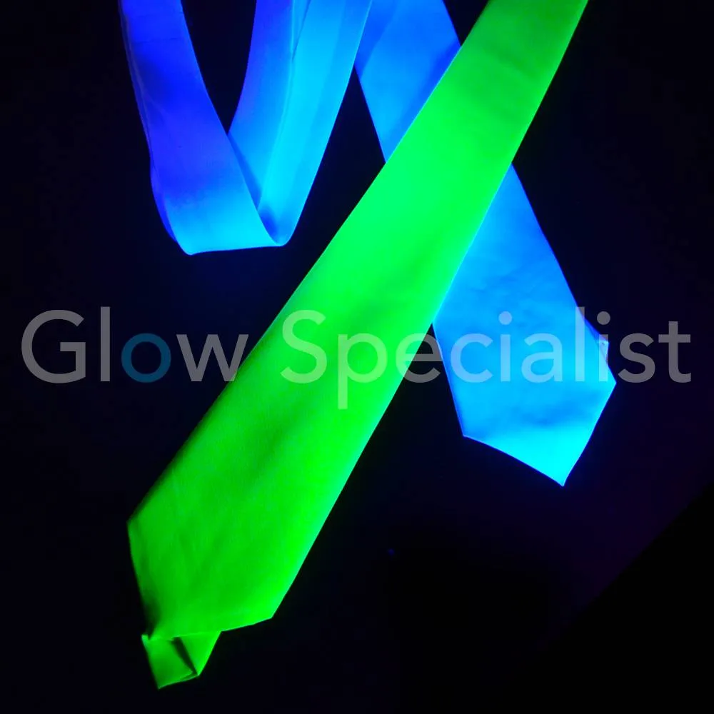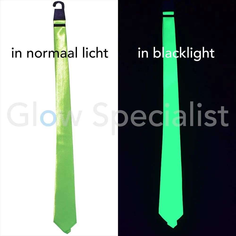 Maak je outfit compleet met deze opvallende stropdas. In normaal licht al mooi, maar bij blacklight geeft deze stropdas fel licht! Leverbaar in wit en neon groen.