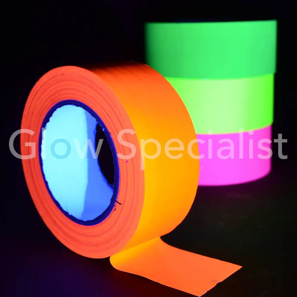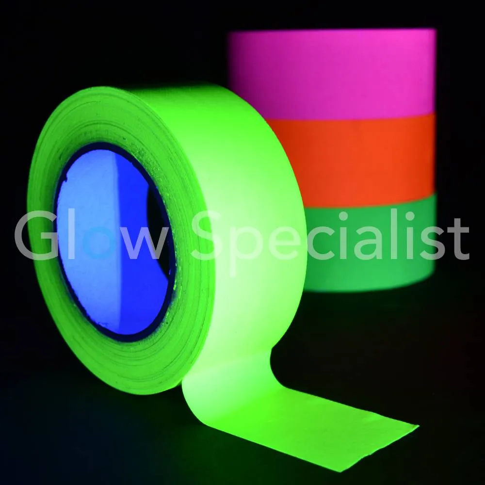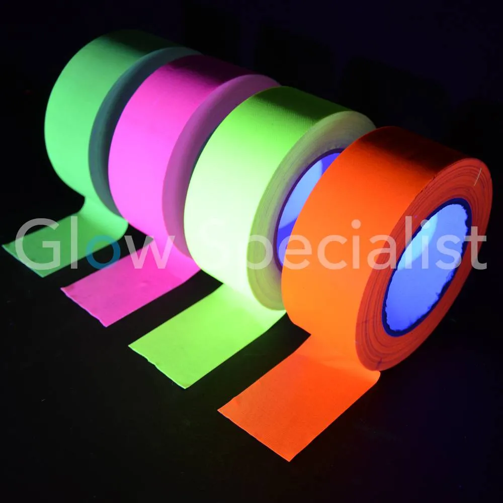 Dit tape wordt veel gebruikt voor Glow sporten om de lijnen van de baan of het veld te markeren. Schijn er een UV-lamp op en de tape licht fluorescerend op.