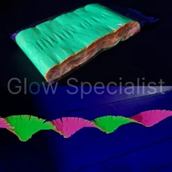 Deze crêpeslinger van 6 meter licht fluorescerend op bij UV/Blacklight. Heb je een neon kinderfeestje, Glow Party of gewoon een feestje (ook zonder blacklight zijn de slingers vrolijk gekleurd), kies dan voor deze neon slingers. Hang ze aan het plafond of wikkel ze om een statafel, stoel, lamp of plant voor een opvallend effect. In tegenstelling tot onze andere neon slingers is deze niet in 1 kleur, maar in multicolor, waardoor de slinger nog mooier oplicht.