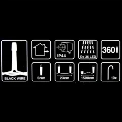 - Lichtkleur LED-lampjes: warm wit, draadkleur: zwart