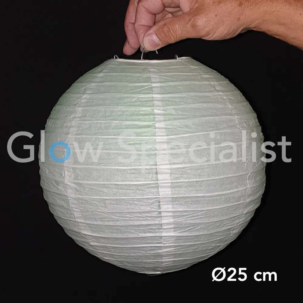 De lampionnen zelf geven geen licht, maar je kunt er bijvoorbeeld een led lampje in hangen of een gekleurde spot op laten schijnen. Ook een hele leuke en betaalbare oplossing zijn onze glowsticks. Je kunt elke gewenste kleur middels het haakje in de lamp hangen en de lampion zal uren lang gloeien (mits het donker genoeg is). Zowel de 4 inch glowstick (10 cm) als de 6 inch breaklight (15 cm) past in alle drie de maten lampions.