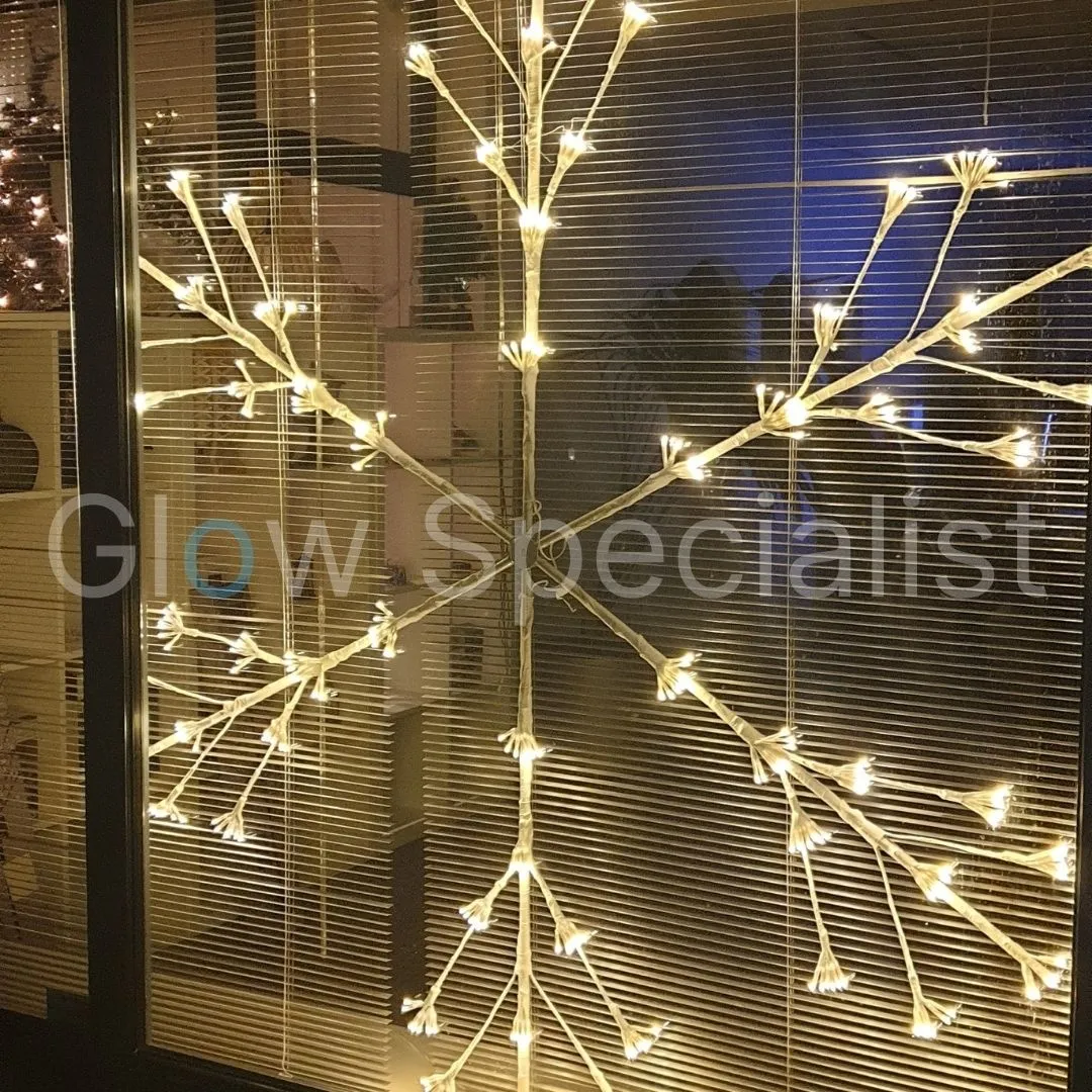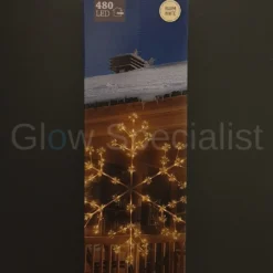 Een echte eyecatcher, deze opvallende sneeuwvlok van maar liefst 150 x 150 cm! De sneeuwvlok is voorzien van 480 led lampjes in een warm witte kleur. Door zijn afmeting zie je hem al van ver hangen.