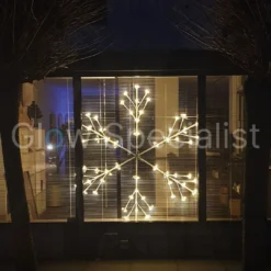 Als je raam niet groot genoeg is, kun je ‘m ook tegen je buitenmuur hangen want de sneeuwvlok is door zijn IP44 waarde zowel voor binnen als buiten gebruik geschikt. Het zorgt voor een sfeervol winters plaatje.